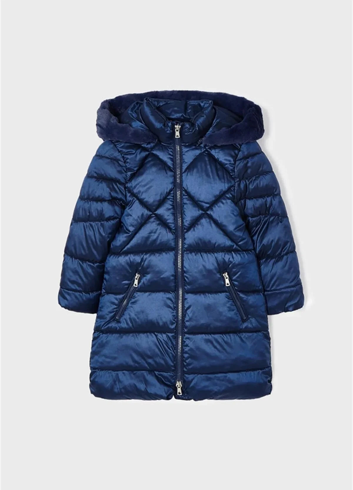 Mayoral Kız Çocuk Sıcak Astarlı Uzun Boy Lacivert Parlak Mont