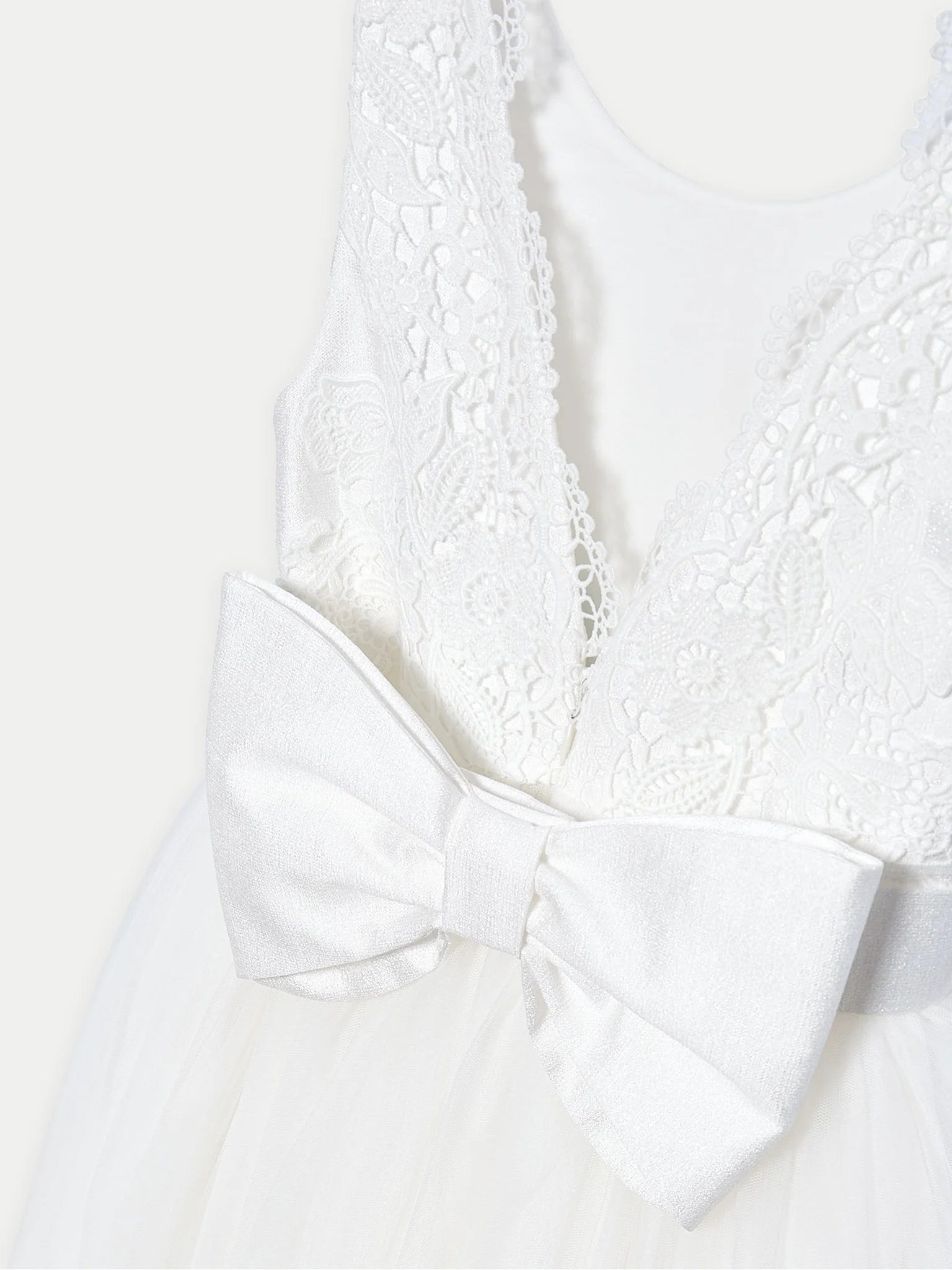 Abel&Lula Beyaz Dantelli Arkası Fiyonklu Abiye Elbise